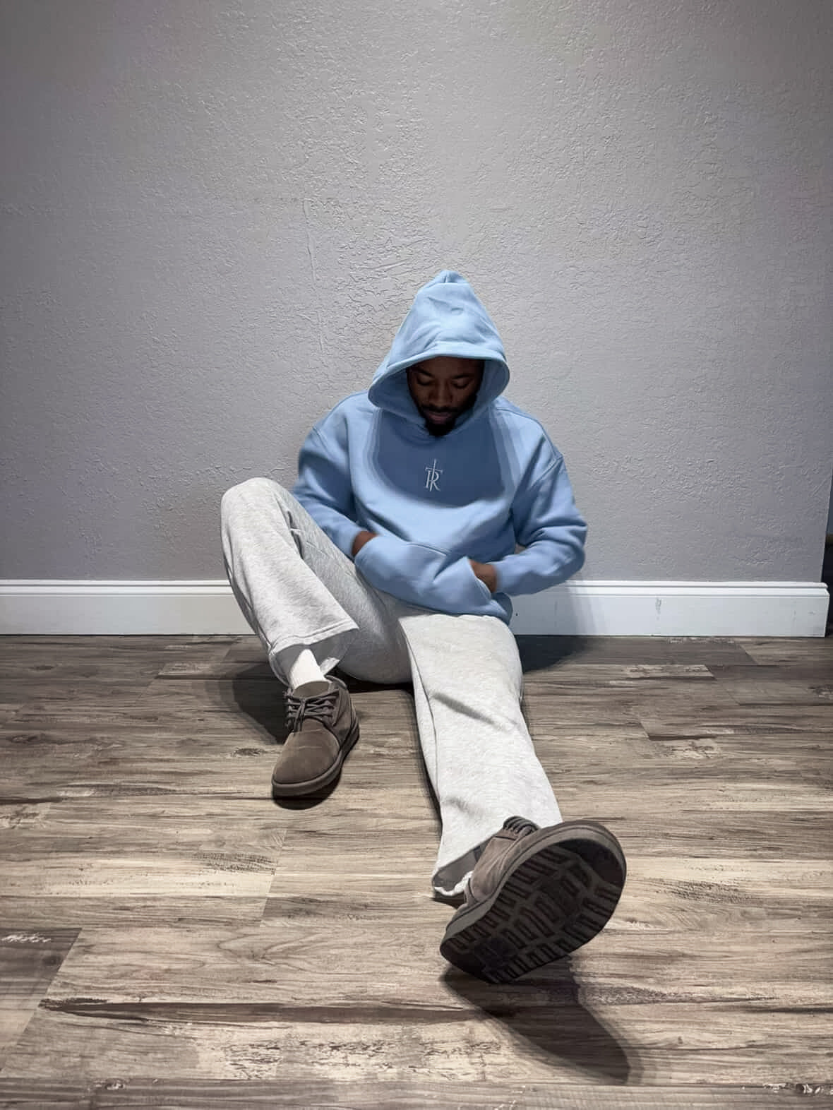 Our signature box hoodie, now in a stunning ice-blue color.